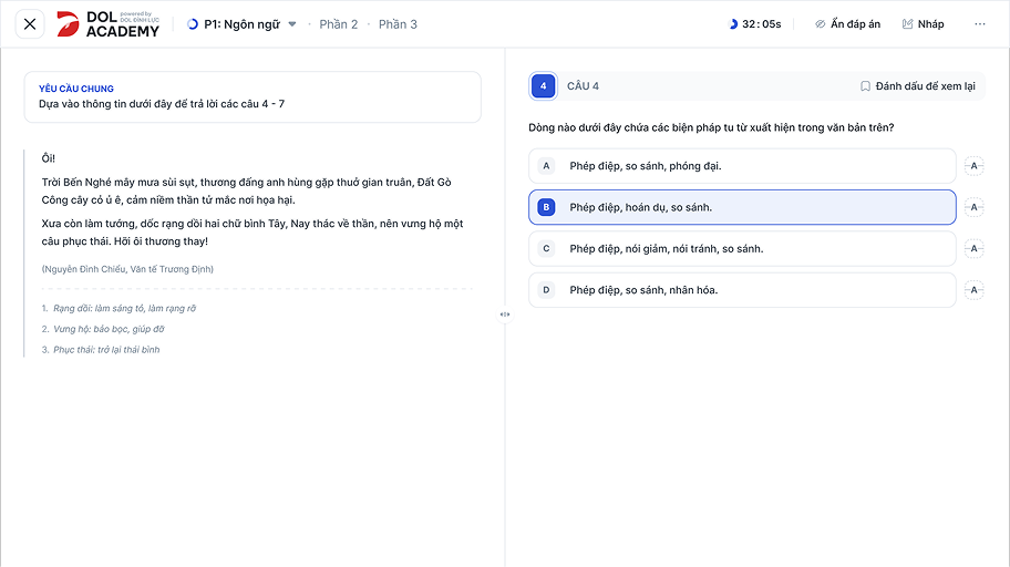 Trải nghiệm thi ĐGNL Online