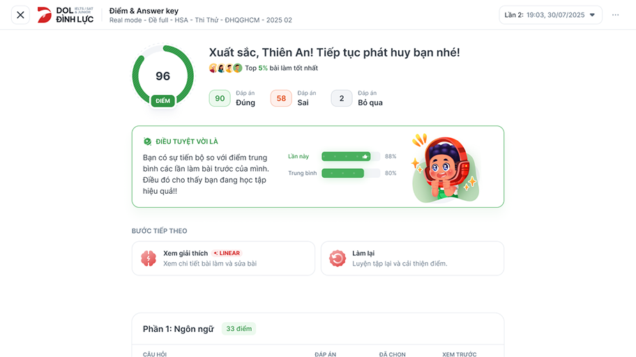Tối ưu thiết kế thông minh, luyện thi trên mọi thiết bị.