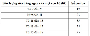 Bảng phân bố sản lượng sữa hàng ngày của các con bò theo các lớp: