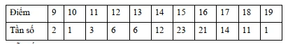 Có 100 học sinh tham dự kì thi Olympic Toán - tiếng Anh (thang điểm 20). Kết quả điểm của 100 học sinh trên được ghi lại ở bảng sau: Tìm mốt của mẫu số liệu trên.