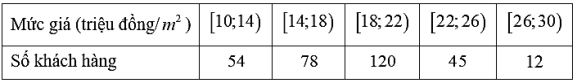 Một công ty xây dựng khảo sát khách hàng xem họ có nhu cầu mua nhà ở mức giá nào. Kết quả khảo sát được ghi lại ở bảng sau: Mốt của mẫu số liệu ghép nhóm trên gần bằng giá trị nào sau đây?