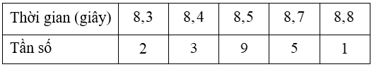 Thời gian chạy 50m của 20 học sinh được ghi lại trong bảng dưới đây: Số trung bình cộng thời gian chạy của học sinh là: