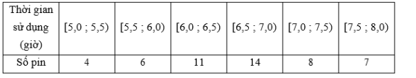 Để đánh giá mức độ ổn định của một loại pin điện, người ta thống kê thời gian sử dụng liên tục của pin khi được sạc đầy điện theo bảng mẫu số liệu sau: Hãy cho biết độ lệch chuẩn của mẫu số liệu gần nhất với giá trị nào sau đây?