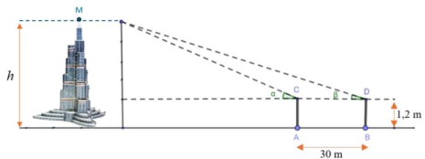 Để đo chiều cao tòa tháp người ta dùng dụng cụ đo góc có chiều cao