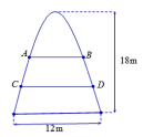 Một cổng chào có dạng hình Parabol chiều cao 18 m, chiều rộng tại chân cổng 12 m như hình vẽ bên. Người ta căng hai sợi dây trang trí AB, CD nằm ngang đồng thời che phần diện tích giới hạn bởi Parabol và mặt đất thành ba phần có diện tích bằng nhau. Tỉ số