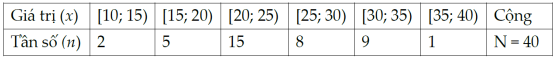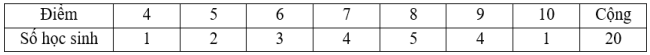 Cho bảng số liệu điểm bài kiểm tra môn toán của
