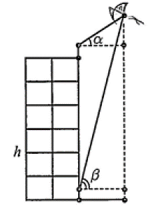 Người A đứng ở đỉnh của tòa nhà và quan sát chiếc diều, nhận thấy góc nâng (góc nghiêng giữa phương từ mắt của người A tới chiếc diều và phương nằm ngang) là