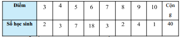 Cho bảng số liệu ghi lại điểm của