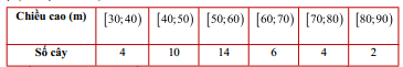 Cho bảng tần số ghép nhóm số liệu thống kê chiều cao của