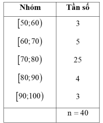 Người ta tiến hành phỏng vấn 40 người về một mẫu quần mới. Người phỏng vấn yêu cầu cho điểm mẫu quần đó theo thang điểm là 100. Kết quả được trình bày theo mẫu số liệu ghép nhóm được cho ở bảng bên dưới: Phương sai của mẫu số liệu ghép nhóm đó nằm trong khoảng nào dưới đây?