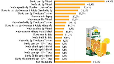 Tỷ lệ cao nhất là sản phẩm nước cam ép Vfresh với tỷ lệ 69,3%.