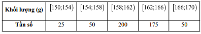 Khối lượng của 500 quả dĩ được ghi lại ở bảng sau: Độ lệch chuẩn của mẫu số liệu trên là: