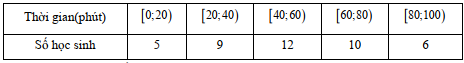 Khảo sát thời gian tập thể dục trong ngày của một số học sinh khối 11 thu được mẫu số liệu ghép nhóm như sau: Nhóm chứa tứ phân vị thứ nhất là