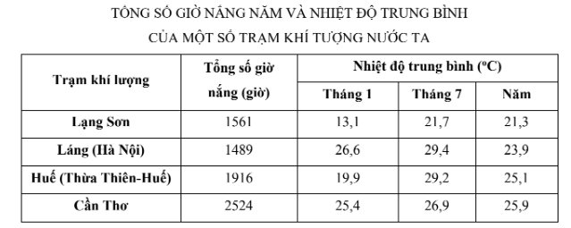 Tỉnh thành nào có tổng số giờ nắng cao nhất?