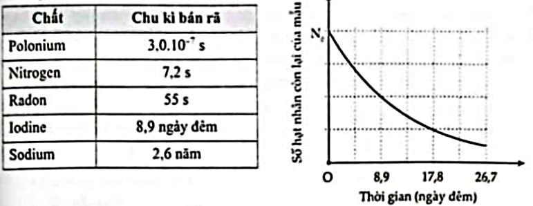 Chu kì bán rã của một mẫu chất phóng xạ là thời gian để số hạt nhân ban đầu của mẫu chất đó còn lại một nửa. Chu kì bán rã của mẫu chất X là