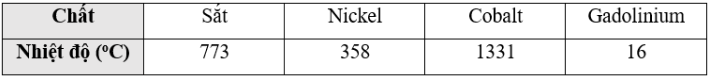 Dựa vào bảng nhiệt độ Curie của một số chất, ở nhiệt độ