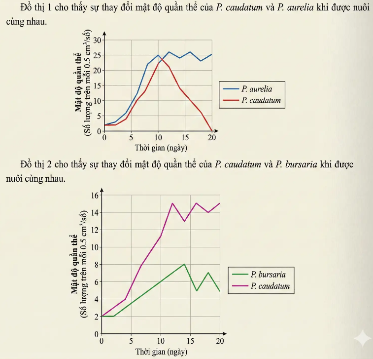 Trong một loạt thí nghiệm, Gause đã nuôi các loài Paramecium khác nhau trong cùng một thùng chứa và trong các điều kiện giống hệt để điều tra sự cạnh tranh giữa các loài. Các đồ thị dưới đây cho thấy kết quả từ hai thí nghiệm của ông.