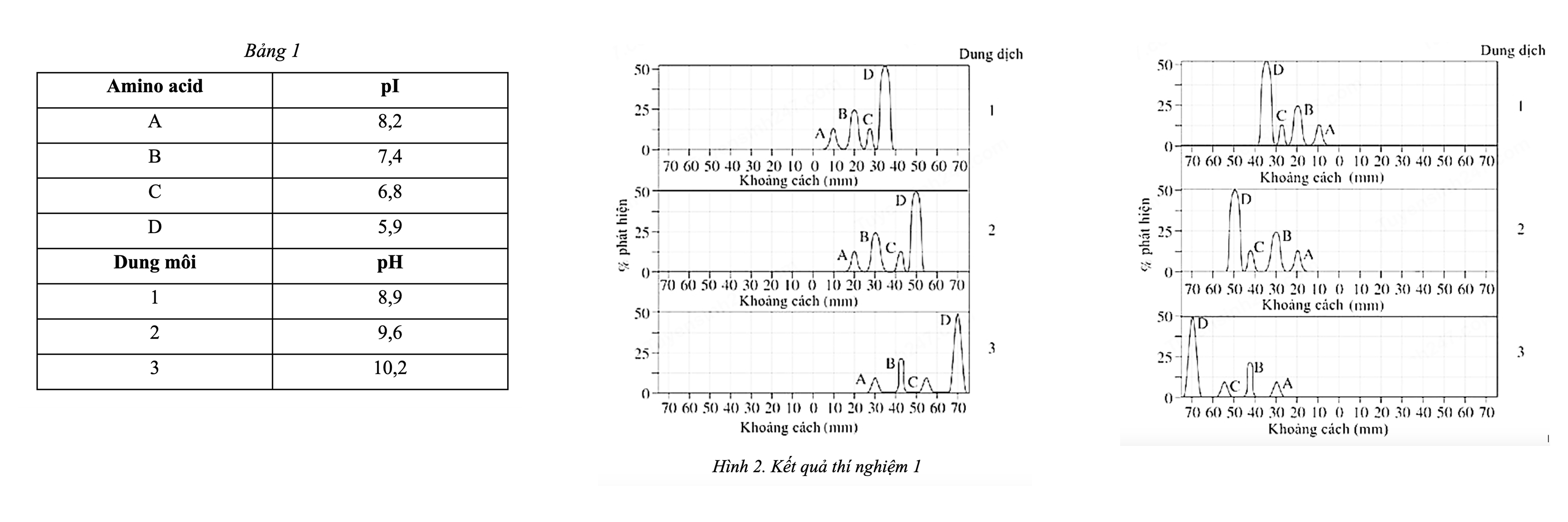 Giả sử thí nghiệm 1 được lặp lại, sử dụng dung môi 2, thêm vào hỗn hợp amino acid một amino acid Y (