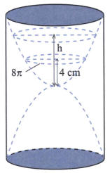 Một chiếc đồng hồ cát như hình vẽ, gồm hai phần đối xứng nhau qua mặt phẳng nằm ngang và đặt trong một hình trụ. Thiết diện thẳng đứng qua trục của nó là hai Parabol chung đỉnh và đối xứng nhau qua mặt phẳng nằm ngang. Ban đầu lượng cát dồn hết ở phần trên của đồng hồ thì chiều cao của mực cát bằng