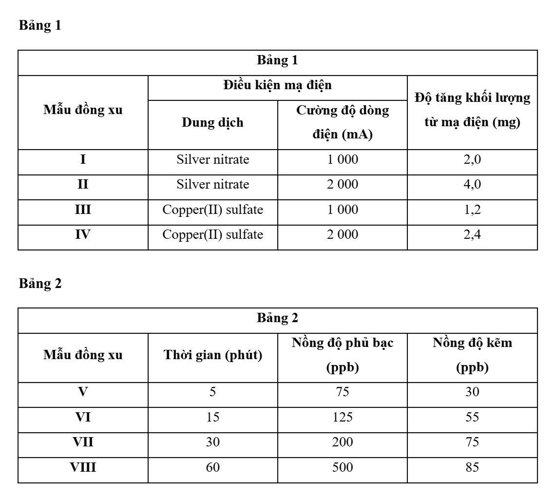 Kết quả của cả hai thí nghiệm được thể hiện trong bảng dưới đây: