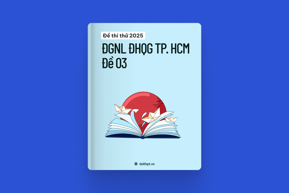 Đề thi thử ĐGNL ĐHQG TP.HCM năm 2025 - Mã đề 03 được xây dựng dưới dạng làm thử đề trắc nghiệm trực tuyến, giúp bạn làm quen format đề. Nền tảng sẽ chấm điểm tự động sau khi bạn làm xong bài, đồng thời cũng lưu lại lịch sử làm bài để bạn thuận tiện theo dõi quá trình ôn luyện, đồng thời cung cấp đáp án có giải thích rõ ràng và tải file PDF đề thi miễn phí.
