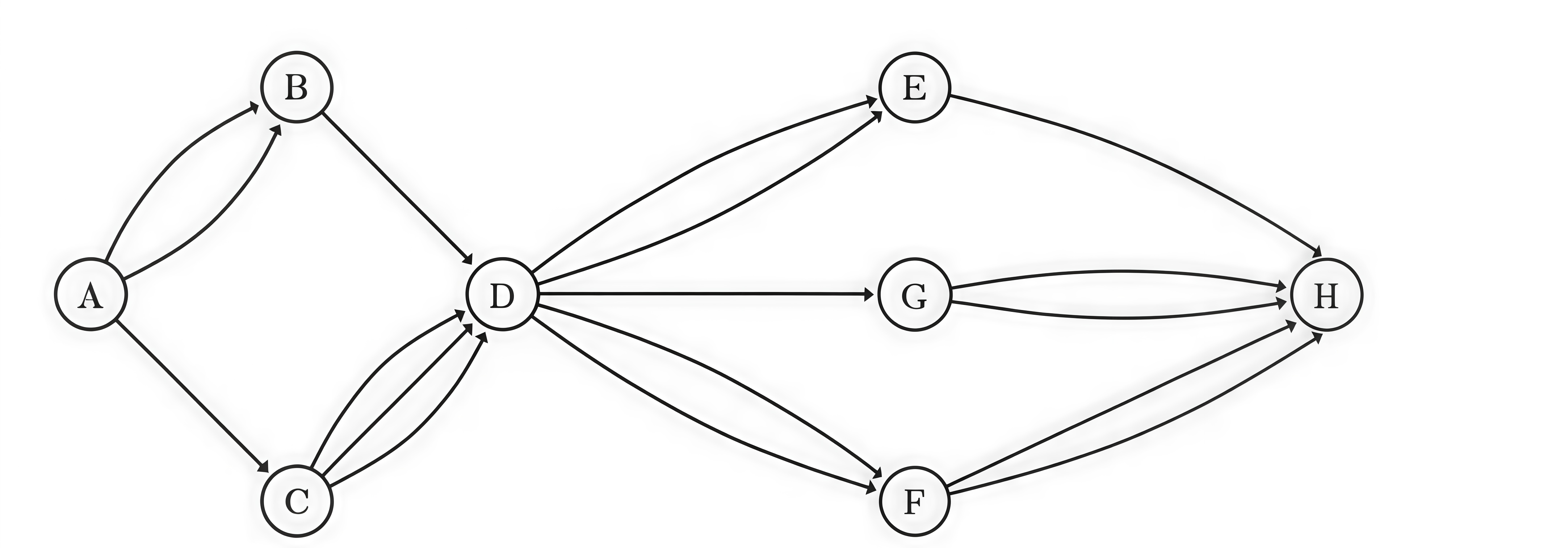 Một sơ đồ các lối đi một chiều theo chiều mũi tên để đi từ địa điểm