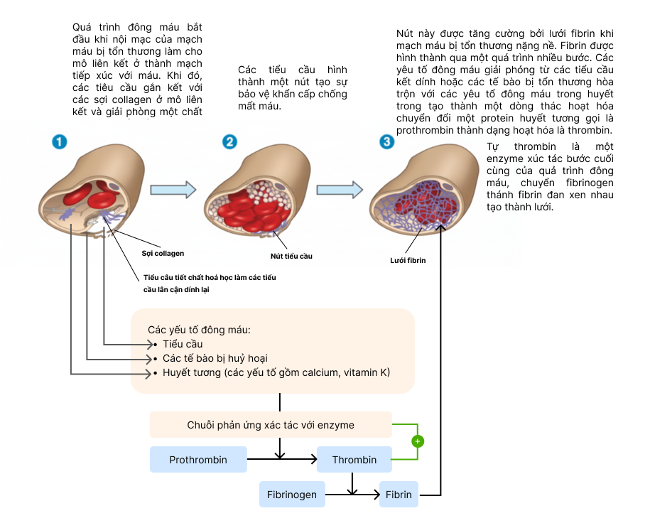 Thrombin → Prothrombin → Fibrin → Lưới fibrin