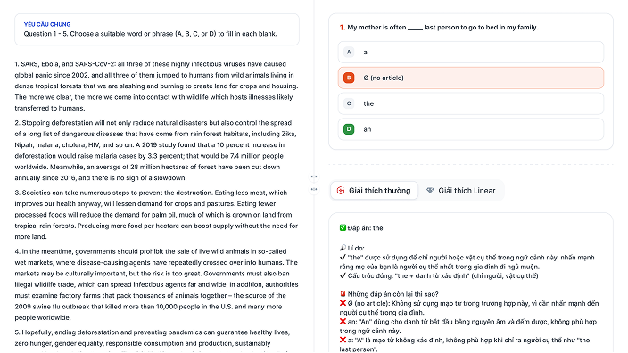 Chấm & giải thích miễn phí